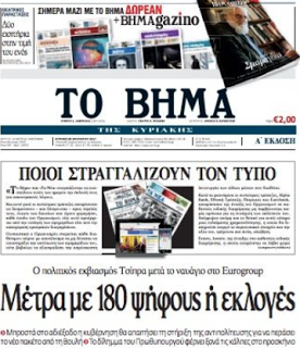 Το αποχαιρετιστήριο πρωτοσέλιδο στο "ΒΗΜΑ"