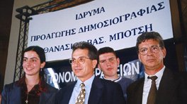 Βραβεία οικονομικού ρεπορτάζ με χορηγό το Εμπορικό και Βιομηχανικό Επιμελητήριο Αθηνών στους δημοσιογράφους Γιώργο Παππού και Γιώργο Παπανικολάου.